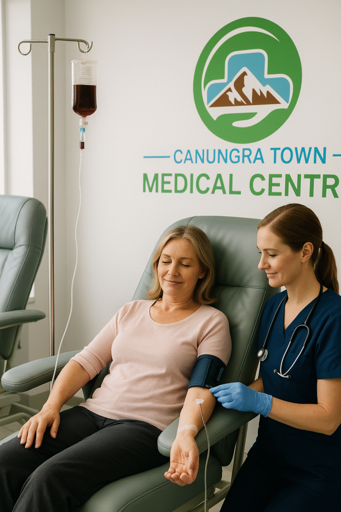 An iron infusion is a procedure to deliver iron into your vein via a slow IV drip. It may take around 45 minutes to complete the procedure. The doctor and nurse will explain the risk and benefit of the procedure before they give you the infusion. Our highly qualified team at Canungra Town Medical Centre will make it very easy , smooth and a pleasant experience. Please inform our medical team if you have any allergies or medical conditions that may interact with the iron infusion.